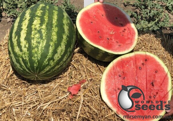 Арбуз Термез F1 – раннеспелый гибрид типа Кримсон Свит, выведенный селекционной компанией Enza Zaden, Нидерланды. От появления всходов до сбора урожая проходит 55-60 дней, а при выращивании рассадным способом период созревания длится 40-45 дней. Растение сбалансированное, компактное, формирует 1-2 плода даже при резких изменениях температуры. Быстро восстанавливается после стрессовых воздействий. Не подвержено фузариозному увяданию.