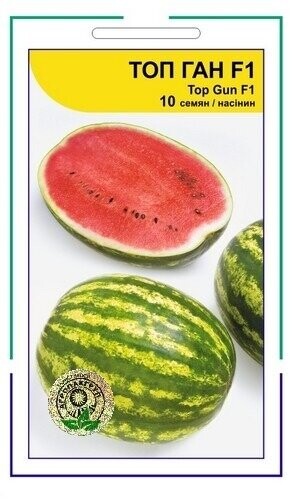 Упаковка МиниСрок созревания РаннийЦвет КрасныйФорма плода ОвальныйПроизводитель SyngentaАрбуз Топ Ган F1 10 семян. А