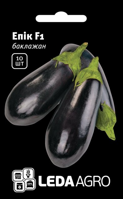Семена баклажана Эпик F1, фасовка 10 семян. Семена Баклажана Эпик по 10 семян в упаковке. Высокоурожайный ранний гибрид. Растение мощное, высотой до 90 см. Адаптирован к широкому диапазону условий выращивания (очень пластичный). Плоды овально-конические, размером 10х21 см. Кожица плодов фиолетово-черная, мякоть белая. Устойчив к вирусу табачной мозаики. Плотность посадки 180-220 раст./сотку. Рекомендуется для выращивания в пленочных укрытиях и открытом грунте.