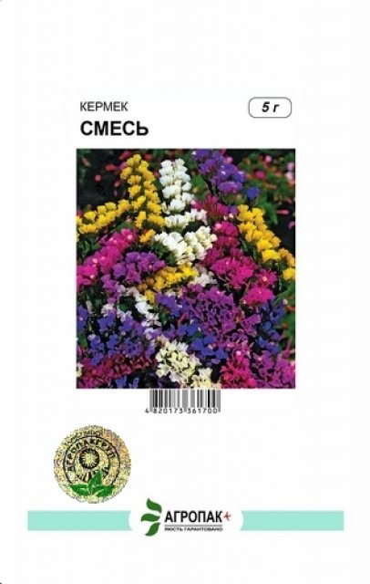 Однолетнее растение высотой 40-50 см. Цветки мелкие, разноцветные в одноцветковых колосках собранных в густые колосья, которые образуют сложные метельчатые или щитковидные соцветия. Относится к группе сухоцветов. Прекрасный материал для зимних букетов и композиций. Интенсивность окраски цветков сохраняют несколько лет. Кермек широко используют для озеленения в рабатках, клумбах, миксбордерах. Цветет с июля до морозов.