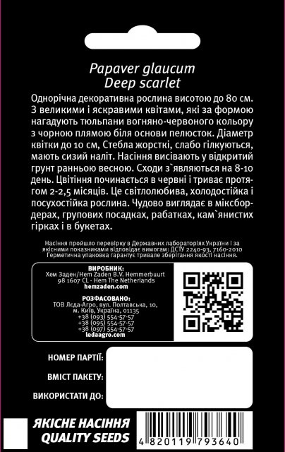 10 Цвет КрасныйПроизводитель Hem Zaden B.V.Мак Скарлет, крупноцветковый 0,2г. L