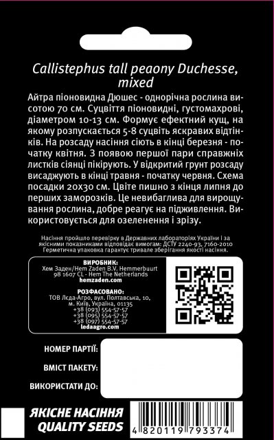 10 Производитель Hem Zaden B.V.Астра Дюшес смесь, пионовидная 0,2г. L