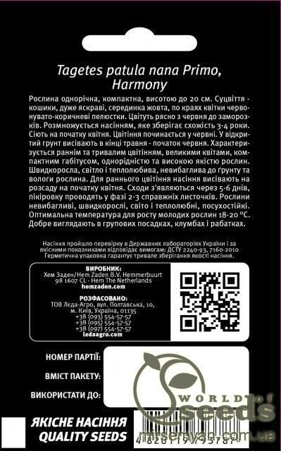10 Цвет Красный ЖелтыйПроизводитель Hem Zaden B.V.Бархатцы Примо, Гармония 0,2г. L