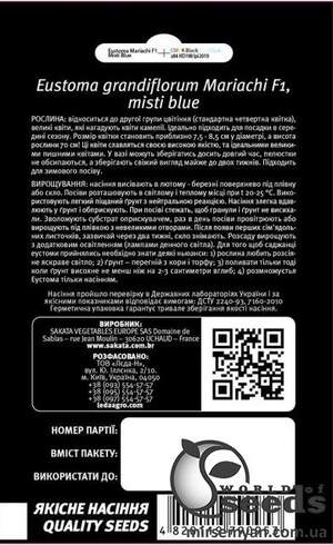 10 Упаковка МиниПроизводитель Hem Zaden B.V.Эустома Мариачи F1 городе Блуи 5 семян. L