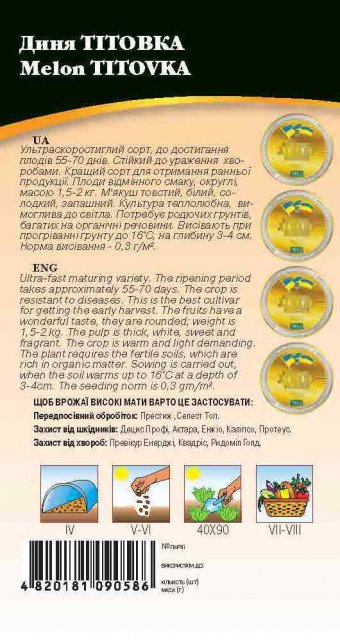 World of Seeds ukraine Упаковка МиниСрок созревания Ранний СреднераннийЦвет ЖелтыйПроизводитель World of SeedsДыня Титовка 2г WoS