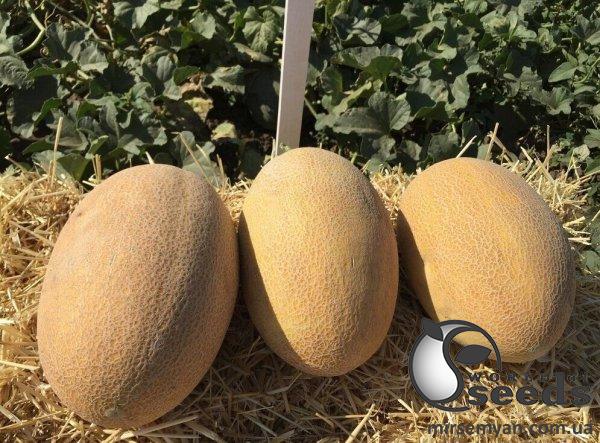 Комбинация высокой продуктивности и хорошего качества плодов. Созревает через 65-68 дней от пересадки рассады. Здоровое растение с хорошо развитым листовым аппаратом. Формирует стандартные однородные плоды овальной формы. Густая и ярко выраженная сетка. Отличное крепление плодоножки к плоду. На растении 4-5 плодов, средний вес 3-3,5 кг. Мякоть светлая, приятный аромат и сладкий вкус. Лёжкий и транспортабельный. Для выращивания в низких туннелях и в открытом грунте.