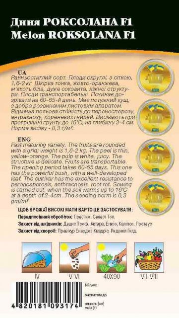 World of Seeds ukraine Упаковка МиниСрок созревания Ранний СреднераннийЦвет ЖелтыйПроизводитель World of SeedsДыня Роксолана 2г WoS