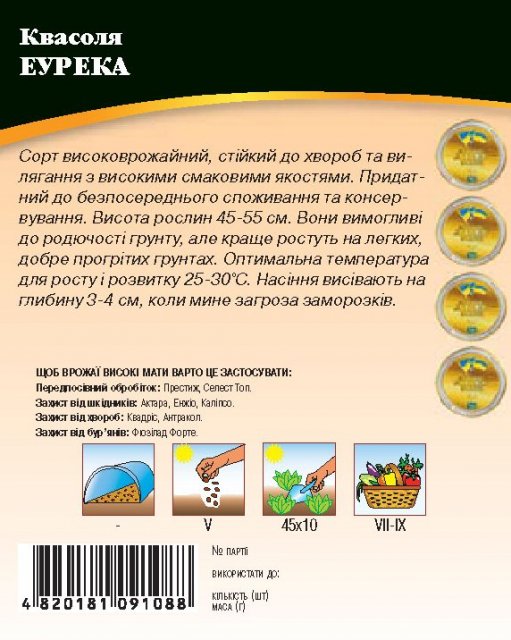 World of Seeds ukraine Упаковка МиниСрок созревания РаннийЦвет БелыйПроизводитель World of SeedsФасоль Эурека 20г WoS