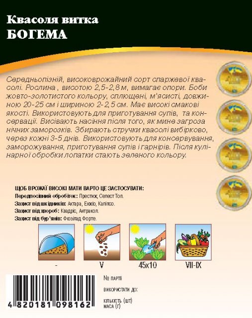 World of Seeds ukraine Упаковка МиниСрок созревания СреднепозднийЦвет ЖелтыйТип СпаржеваяПроизводитель World of SeedsФасоль спаржевая Богема 20 г. WoS