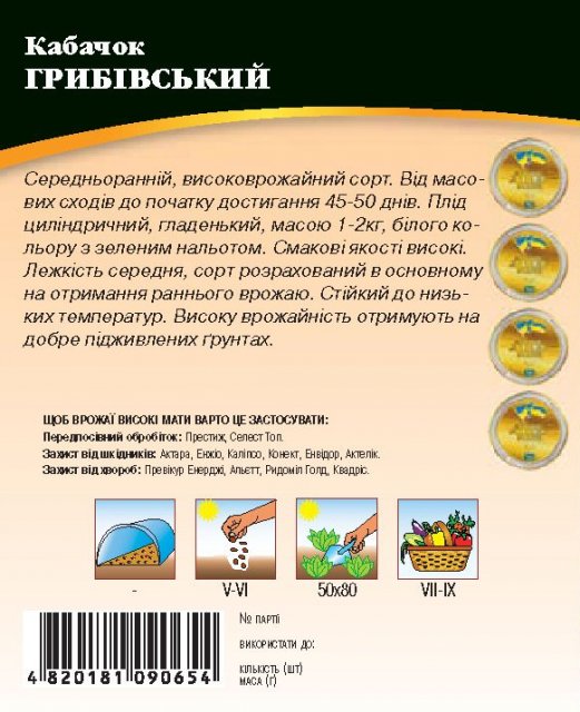 World of Seeds ukraine Упаковка МиниСрок созревания СреднераннийЦвет ЗеленыйПроизводитель World of SeedsКабачок Грибовские 10г WoS