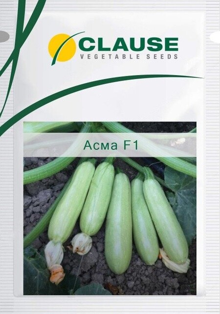 Асма (Asma) F1 - очень ранний гибрид кабачка. Рекомендуется для получения ранней продукции весной под пленочными укрытиями и в открытом грунте. Вегетационный период составляет 35-40 дней от появления всходов. Сильное и мощное растение кустового типа, компактное, плодоносит 4-6 месяцев, сохраняя отличный вкус и товарные качества. Плоды правильной цилиндрической формы, светло-зеленого цвета, готовы к сбору при достижении длины 18-22 см., при перерастании не теряют своей формы и вкусовых качеств. Внутри белые, однородные, с нежным сладким вкусом, легко снимаются с куста. Используется для ранней весенней реализации на свежем рынке и для переработки в основной сезон. Толерантен к мучнистой росе. Купить семена кабачка Асма F1 500 сем. Семена кабачка Асма F1 оптом и в розницу. Семена кабачка гибрид Асма от компании Clause (Клоз), Франция.