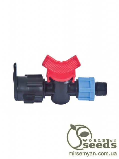 Кран стартовый для капельной ленты от гибкой магистрали рукава “Lay Flat” 17мм или садового армированного шланга.