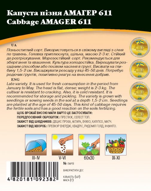 World of Seeds ukraine Упаковка МиниСрок созревания ПозднийЦвет ЗеленыйПроизводитель World of SeedsКапуста Амагер 10г WoS