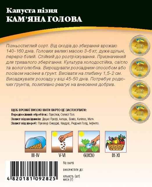 World of Seeds ukraine Упаковка МиниСрок созревания ПозднийЦвет Зеленый БелыйПроизводитель World of SeedsКапуста Каменная голова 10г WoS