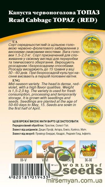 World of Seeds ukraine Упаковка МиниЦвет ЗеленыйПроизводитель World of SeedsКапуста краснокочанная Топаз 0,5г WoS