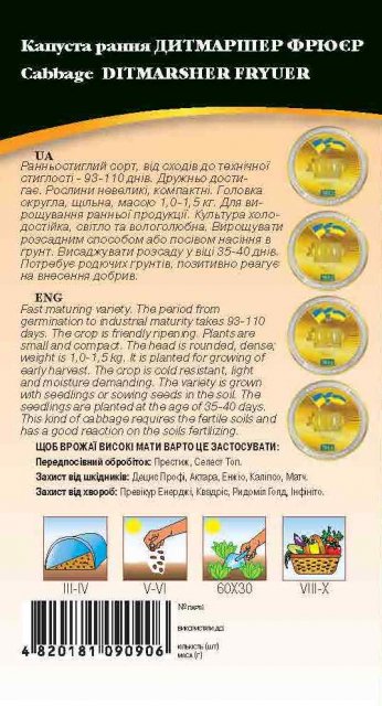 World of Seeds ukraine Упаковка МиниСрок созревания РаннийЦвет ЗеленыйПроизводитель World of SeedsКапуста Дитмаршер Фрюер 1г WoS