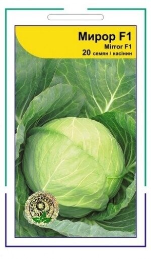 Семена капусты белокочанной Мирор F1, фасовка 20 семян. Самый ранний гибрид белокочанной капусты. Срок созревания – 45-50 дней. Кочаны привлекательные, ярко окрашенные, гладкие, блестящие, средним весом – 1,5 кг. Гибрид отличается высокой силой роста. Высокая ножка позволяет избежать подпревания кочана в поле и обеспечивает легкость уборки. Компактная листовая розетка позволяет делать загущенную посадку. Рекомендуется для выращивания под пленкой, укрывным материалом и в открытом грунте. Устойчив к фузариозу