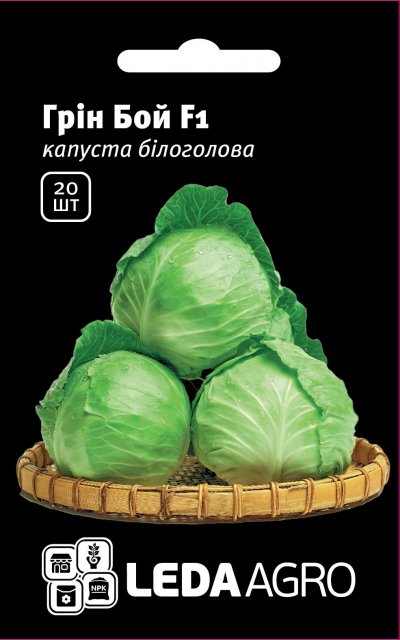 Грин Бой F1. Наиболее пластический гибрид с среднеспелых капусты. Вегетационный период - 80-85 дней после высадки рассады. Растение средне-мощная, неприхотлива. Головка округлая, компактная, с отличными вкусовыми качествами, массой 2-4 кг, зеленого цвета, плотная. Высокая устойчивость к неблагоприятным погодным условиям (жаростойкий). Хорошо сохраняется в поле без растрескивания и легко транспортируется. Предназначен для свежего потребления, переработки и кратковременного хранения.