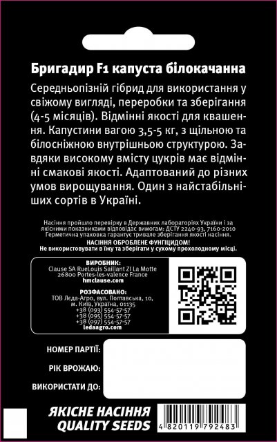 Упаковка МиниЦвет ЗеленыйПроизводитель ClauseКапуста Бригадир F1 20 семян. L