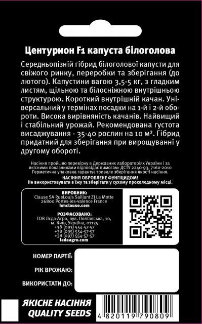 Упаковка МиниСрок созревания СреднепозднийПроизводитель ClauseКапуста Центурион F1 20 семян. L