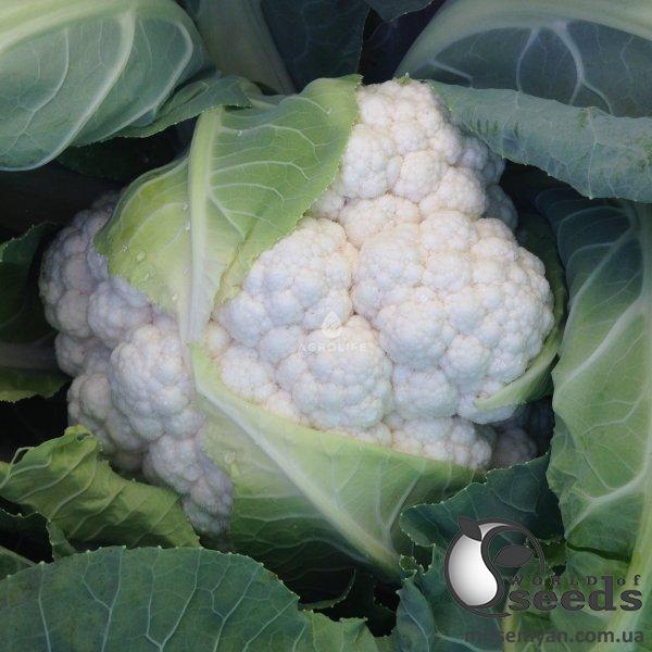 Новый гибрид цветной капусты среднего срока созревания. Период вегетации 80-85 дней от пересадки рассады. Легко адаптируется к различным условиям и агрофону выращивания. Сильное растение, хорошо развитый листовой аппарат. Формирует округлые, красивые белые соцветия. Очень плотные соцветия весом 1,5-2 кг. Оптимальный для уборки в осенний период, с начала сентября. Для переработки и свежего рынка.