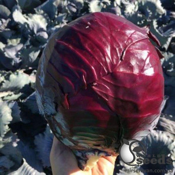 Краснокочанная капуста для хранения. Период вегетации 130 дн от высадки рассады. Сизо - фиолетовый цвет листа. Лист максимально укрыт восковым налетом. Выровненность головок при стоянии в поле 80 – 90 %. Мощная листовая масса. Мощная корневая система. Плотная структура головки отсутствуют пустоты. Компактный кочан 8 х 3 см. Минимальное поражение трипсом. При весе головки до 2 кг овально вытянутая вверх форма головки. Устойчивость к фузариозному увяданию.