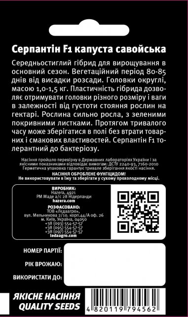 HAZERA netherlands Упаковка МиниСрок созревания СреднераннийЦвет ЗеленыйПроизводитель HAZERAКапуста савойская Серпантин F1 15 семян. L