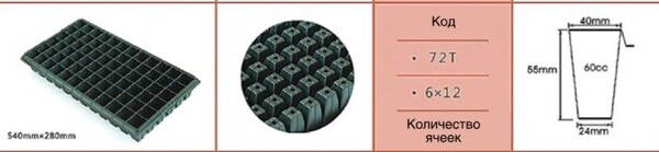 Кассета для рассады 72Т, 540*280мм на 72 ячейки(6*12) изготовлена из качественного полистирола. Кассеты многоразовая, срок годности составляет пять лет. Позволяет получать дружные всходы и равномерный рост, отдельные корневые системы саженцев. Материал из которого изготовленна кассета не содержит хлора, поливинила и других токсичных состовляющих и является абсолютно безопасным для человеки и окружающей среды.