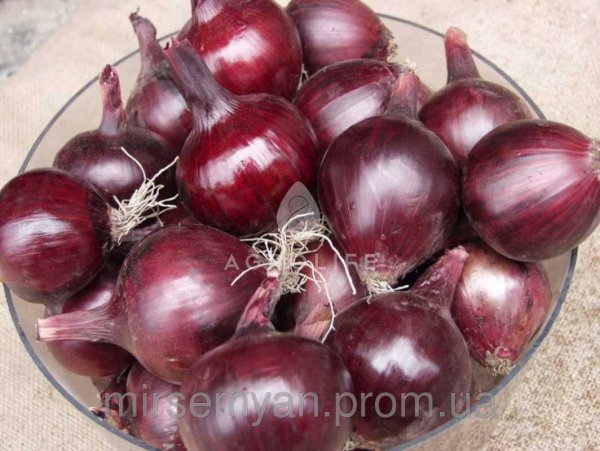 Луковицы - плотные, сердцевидной формы, насыщенного ярко-красного цвета, которое остается на луке и не «окрашивает» ни чем, ни компоненты салата.