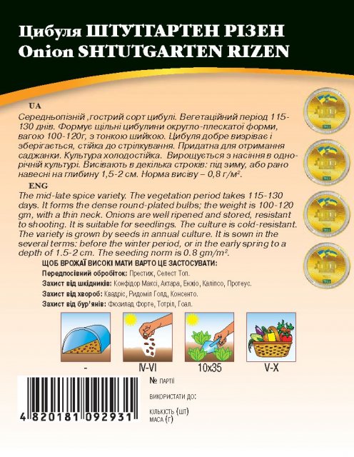World of Seeds ukraine Упаковка МиниСрок созревания РаннийЦвет Желтый ЗеленыйПроизводитель World of SeedsЛук Штутгартен Ризен 10г WoS