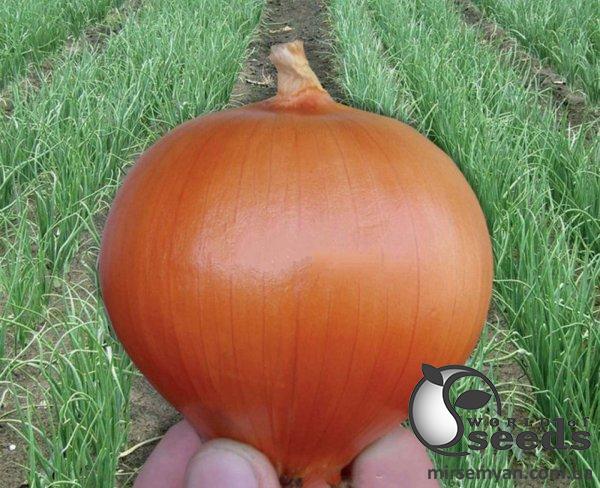 Период вегетации – 110-115 дней. Луковицы имеют округлую, слегка каплевидную форму. Овощ плотный, интенсивной бронзово-коричневой окраски, средний вес 140-160 г. Луковицы практически одинаковые по размеру. Данный сорт образует мощные внешние чешуи, хорошо защищающие луковицы при хранении. При регулярных поливах практически нет «голых» луковиц. Семена лука данного вида хорошо произрастают на всех типах почв. Хранится лук 5-6 мес., практически до мая. Испаньол идеально подходит для прямых продаж в свежем виде, переработки или для продажи после хранения. Ботва остается зеленой дольше всех конкурентов. Лук выдерживает кратковременную воздушную и почвенную засуху. Устойчив к пероноспорозу и фузариозу. Еще одна особенность – приятный сладковатый вкус и нежный аромат. Выращивается в Центральной Украине без полива и дает до 40 т/га урожая. В Николаевской, Херсонской области и АР Крым на «капле» дает 70-75 т/га.