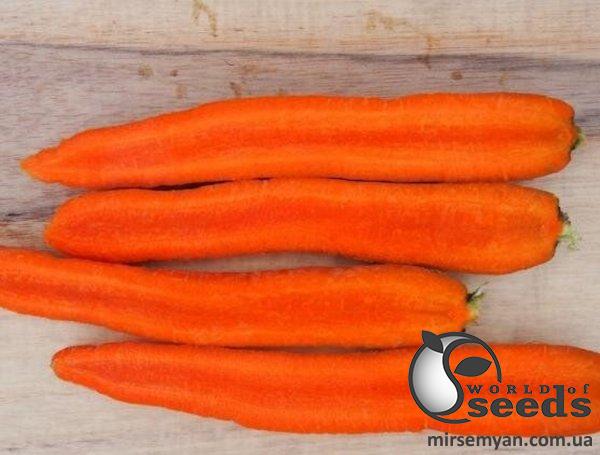 Морковь Мулета F1. Производитель Clause Франция. Поздний гибрид моркови тип Флакке универсального назначения, идеально подходит для переработки на пюре и соки. Урожай готов к сбору через 130 дней после появления всходов. Семена моркови Мулета F1 высевают прямым посевом в открытый грунт. Растение мощной силой роста, формирует здоровую ботву. Корнеплоды однородные с высокими вкусовыми и товарными качествами. Морковь Мулета F1 характеризуется ярким оранжевым окрасом, сладким вкусом, однородной структурой. Корнеплоды классической конической формы, длина до 30 см. Диаметр моркови от 3 – до 7 см, толщина корнеплодов регулируется густотой посева семян моркови Мулета F1. Гибрид устойчив к широкому спектру заболеваний открытого грунта.