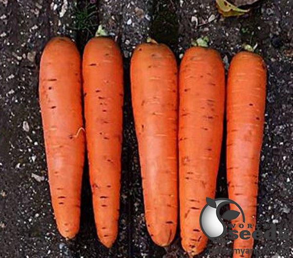 Гибрид моркови типа Берликум. Вегетационный период – 110-120 дней. Используется для свежего потребления и переработки. Характеристика плодов – Корнеплоды цилиндрической формы, привлекательного однородного насыщенного оранжевого цвета снаружи и внутри. Размер – 20-25 см, диаметр – 3-4 см. Очень выровненные большие товарные корнеплоды. Высокое содержание сухих веществ, каротина, сахаров, сладкий вкус. Прочная ботва. Устойчива к заболеванию листового аппарата, к стрелкованию. Пригоден для длительного хранения, не теряя товарный вид (5-6 месяцев). Характерен высокий урожайный потенциал. Хорошо транспортируется.