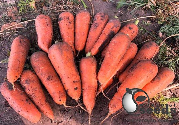 Нью Курода - ранний сорт моркови адаптированный к различным условиям выращивания Сроки созревания 85-95 дней. Корнеплоды конической формы, толстые, однородные, привлекательного темно-оранжевого цвета с высокими вкусовыми качествами. Корнеплоды конической формы, насыщенного оранжевого цвета, гладкие, с тупым кончиком. Средняя длина корнеплода - 18 см, диаметр - 6 см. Плоды с маленькой сердцевиной и отличным вкусом. Отличительной характеристикой является высокая однородность корнеплодов. Листовой аппарат мощный, что дает возможность собирать урожай механическим способом. Сорт адаптируется к различным условиям выращивания.Прекрасно лежит в поле. При посеве в июне месяце корнеплоды отлично хранятся (до апреля-мая). Используется для свежего потребления и переработки, а также для реализации ранней пучковой продукции на рынке. Схема посадки 5х25 см.