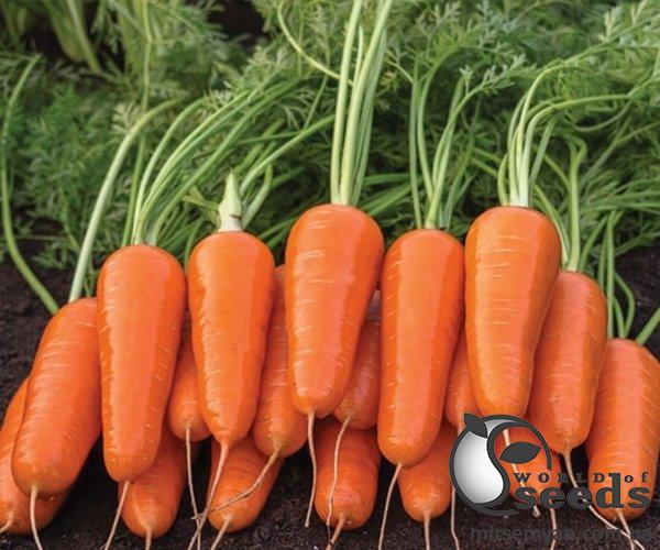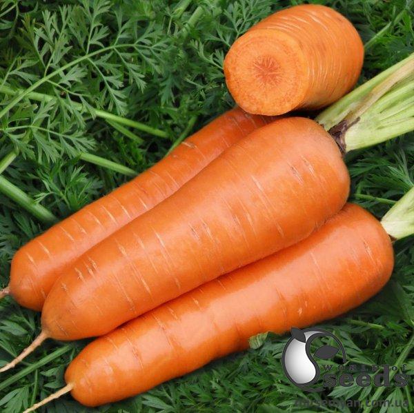 Морковь Шантане Ред Коред представляет собой среднепоздний гибридный сорт, который имеет высокий показатель продуктивности, прекрасные вкусовые качества. Период созревания корнеплода (с момента всходов семян до уборки) составляет 110-130 дней. Хорошо растет на любых почвах (включая самые тяжелые). Длина среднего корнеплода составляет 150 мм, диаметр – 30-50 мм. Кожура и мякоть красно-оранжевого цвета, имеют цилиндрическую форму. Этот сорт долго хранится и имеет отличный вкус.