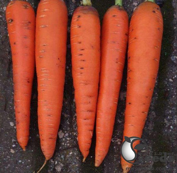 Морковь Мулета F1. Производитель Clause Франция. Поздний гибрид моркови тип Флакке универсального назначения, идеально подходит для переработки на пюре и соки. Урожай готов к сбору через 130 дней после появления всходов. Семена моркови Мулета F1 высевают прямым посевом в открытый грунт. Растение мощной силой роста, формирует здоровую ботву. Корнеплоды однородные с высокими вкусовыми и товарными качествами. Морковь Мулета F1 характеризуется ярким оранжевым окрасом, сладким вкусом, однородной структурой. Корнеплоды классической конической формы, длина до 30 см. Диаметр моркови от 3 – до 7 см, толщина корнеплодов регулируется густотой посева семян моркови Мулета F1. Гибрид устойчив к широкому спектру заболеваний открытого грунта.