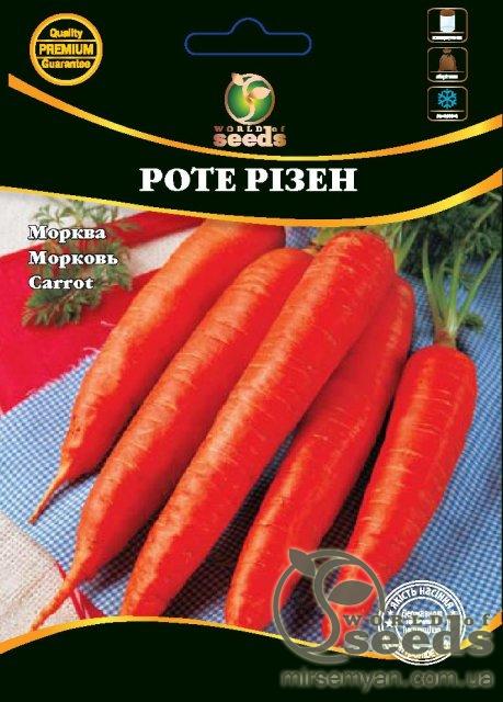 Позднеспелый сорт, до технической спелости 130-150 дней. Высокоурожайный. Корнеплоды яркие, оранжево-красного цвета, крупные, конической формы, длиной 22-24 см. Мякоть сладкая, хрустящая, сочная. Характерезуетьсяпидвищеним содержанием каротина. Хорошо сохраняется. Культура требовательна к влаге и плодородных рыхлых почв. Для одерження дружных всходов семена рекомендуется смачивать в воде комнатной температуры в сутки. Высевать во влажную почву на глубину 2-3 см.