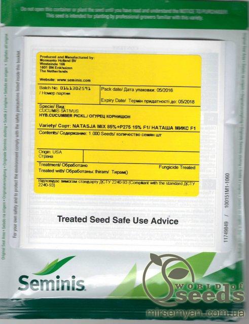 Seminis netherlands Упаковка ПрофСрок созревания РаннийЦвет ЗеленыйПроизводитель SeminisОгурец Наташа F1 1000 семян. (Seminis)