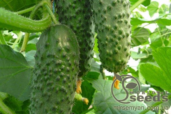 Скороспелый высокоурожайный партенокарпический гибрид. Выделяется стабильно выровненной формой плодов. Зеленец темно-зелёного цвета, крупнобугорчатый, хрустящий. Отлично подходит для потребления в свежем виде и консервирования.