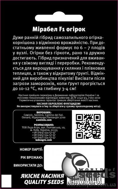 Упаковка МиниСрок созревания РаннийПроизводитель Bejo ZadenОгурец Мирабел F1 10 семян. L