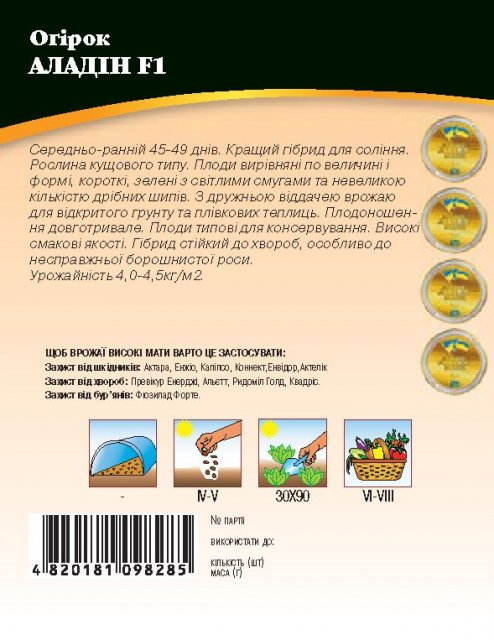 World of Seeds ukraine Упаковка МиниСрок созревания СреднераннийЦвет ЗеленыйПроизводитель World of SeedsОгурец Аладин F1 4г WoS