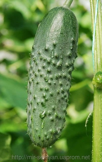 Плоды - превосходного внешнего вида, без горечи, отличного вкуса, чрезвычайно однородные, правильной цилиндрической формы. Окраска темно-зеленая. Соотношение длины к толщине: 3,3/1.