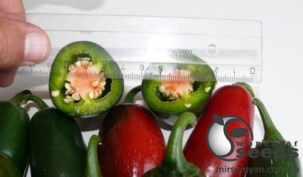 Перец острый 1851 F1.Горький перец тип халапеньйо американской селекции раннего срока созревания. Гибрид раннего срока созревания, завязывает много плодов. Семена острого перца 1851 F1 подходят для прямого посева в открытый грунт и для выращивания рассады. Перцы острые и мясистые. Размер плода 9х4 см, средний вес перца 1851 F1 70 г. Стенка плотная и сочная, толщиной 5 – 7 мм. В технической спелости перец насыщенно-зеленого цвета в биологической спелости ярко-красный