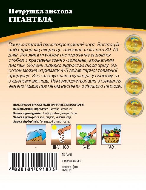 World of Seeds ukraine Упаковка МиниСрок созревания Ранний СреднераннийЦвет ЗеленыйПроизводитель World of SeedsПетрушка Гигантела 20г WoS