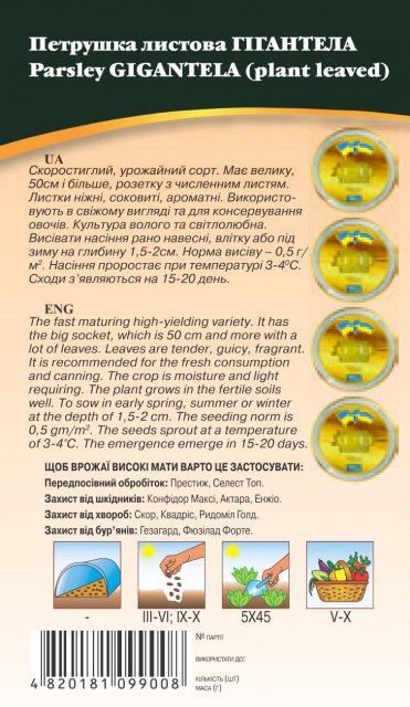 World of Seeds ukraine Упаковка МиниСрок созревания РаннийЦвет Зеленый БелыйПроизводитель World of SeedsПетрушка Гигантела 2 гр. WoS