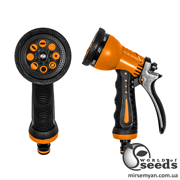 Пистолет металлический 7-режимный «ZEBRA» с адаптером под коннектор, позволяет производить полив различными струями воды.