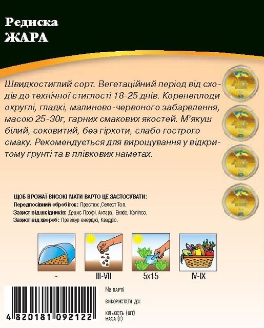 World of Seeds ukraine Упаковка МиниСрок созревания РаннийЦвет ЧерныйФорма плода КруглыйПроизводитель World of SeedsРедис Жара 10 гр. WoS
