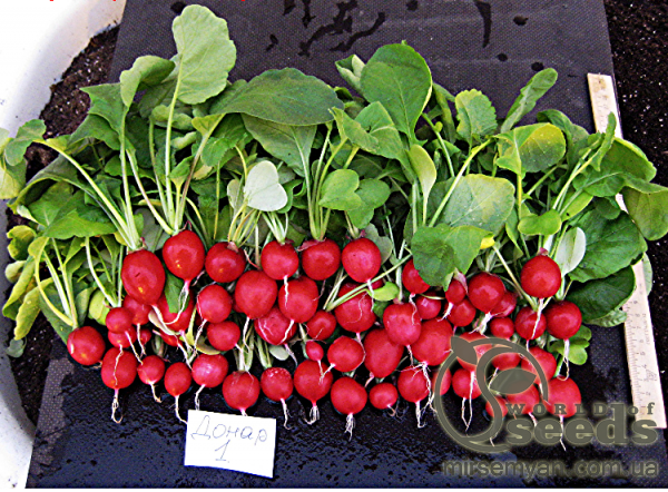 Красивые, яркого цвета, выравненные корнеплоды шаровидной формы Высокий урожай — до 4 кг/м2 в феврале–марте Пригоден для выращивания в условиях недостаточного освещения Короткий листовой аппарат Устойчив к пожелтению ботвы Вегетационный период, дней от посева- 23–25 Дополнительная информация: Для выращивания в теплицах, под укрытиями и в открытом грунте. Возможен посев в кассетах. Диаметр: 3 см Цвет: ярко-красный , Вес (г): 25 г Плоть: сочный, без горечи форма: сферический Посев по схеме: 5 x 15 см Глубина сверления: 2 - 2,5 см