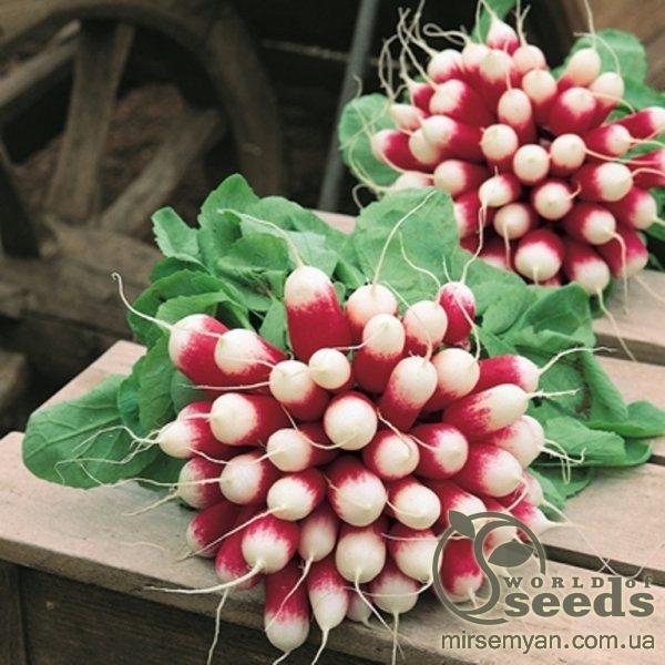Раннеспелый, устойчивый к стрессам гибрид редиса Типа Французский завтрак. Листовой аппарат темно-зеленого цвета, длиной 15 см. Плоды однородные, цилиндрической формы длиной 5-7 см и диаметром 3-4 см, темно-красного цвета с белым кончиком (соотношение 1: 3). На протяжении долгого времени сохраняют товарный вид и блеск после мойки. Мякоть плотная, белая, не склонен к образованию пустот. Гибрид Экспо F1 устойчив к стрелкованию и ложной мучнистой росе.