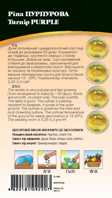 World of Seeds ukraine Упаковка МиниСрок созревания СреднераннийЦвет КрасныйПроизводитель World of SeedsРепа белая с пурпурным кончиком 2г WoS